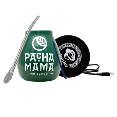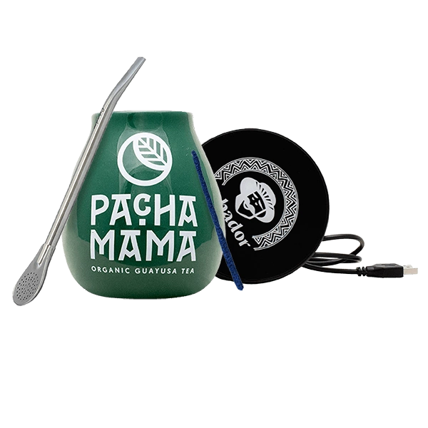 Yerba Mate & Guayusa Tea Accessories Set: USB cup warmer + Calabash + Bombilla