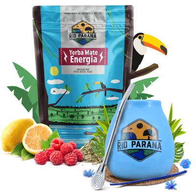 Yerba Mate set Rio Parana Energia 500g Calabash + Bombilla