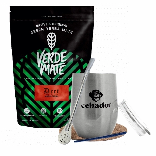 Yerba Mate Set: Verde Mate Energía Guaraná 2x500g + Yerbera