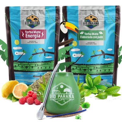 Yerba Mate set Rio Parana Energia Elaborada 2x500g + accessories