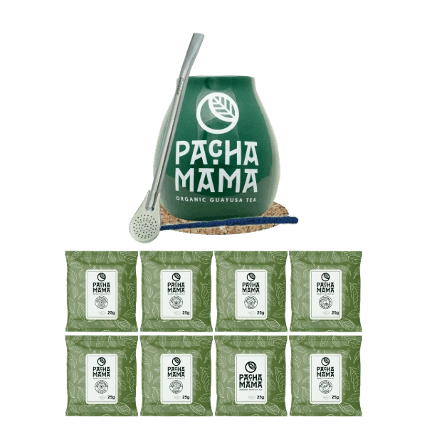 Guayusa Pachamama Set: samples 8x25g + Calabash + Bombilla