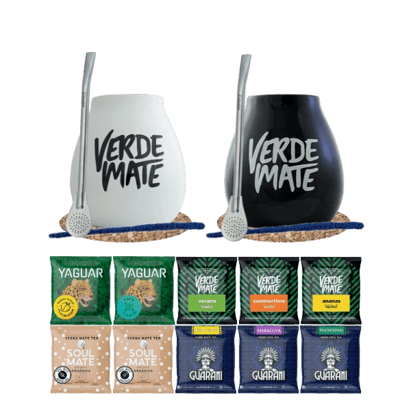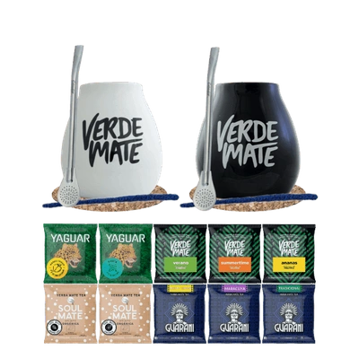 Yerba Mate Set 10x50g 2x Calabash + 2x Bombilla