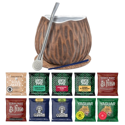 Yerba Mate Set 10x50g Calabash Marmol Bombilla