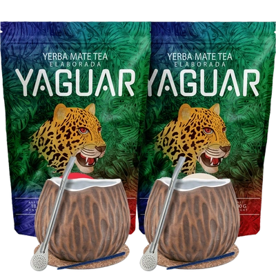 Yerba Mate Set Yaguar 2x500g + Calabash + Bombilla