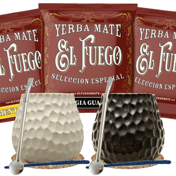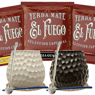 Yerba Mate Set for Two: El Fuego 2x500g + 2x Thermos LED + 2x Calabash + 2x Bombilla