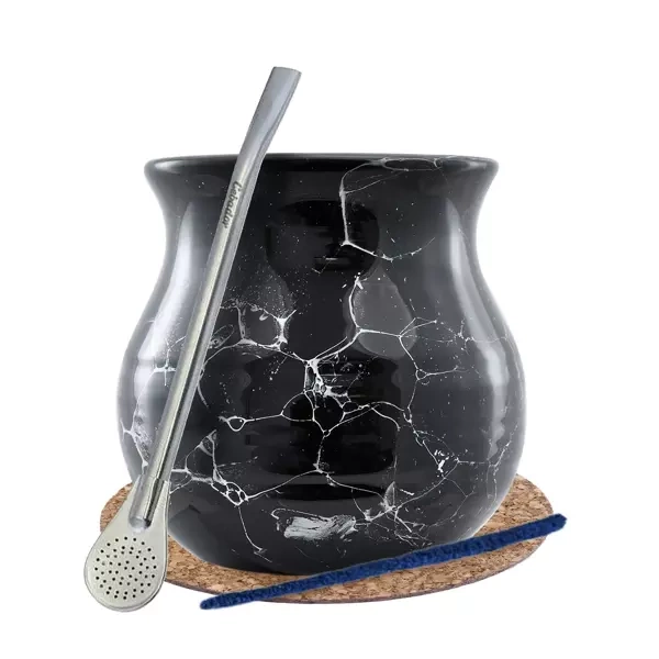 Yerba Mate Matero Set Calabash Marmol Bombilla