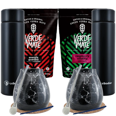 Yerba Mate set for two Matero Marmol 3x50g