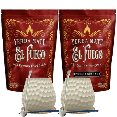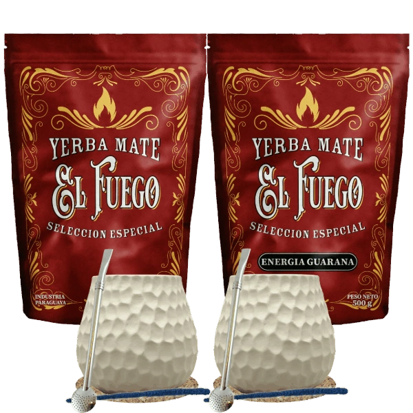 Starter Set for Two Yerba Mate El Fuego 2×500g + 2× Mate Gourd + 2× Bombilla