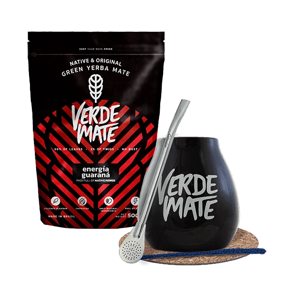 Yerba Mate Set: Verde Mate Energía Guaraná 500g + Calabash + Bombilla