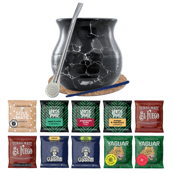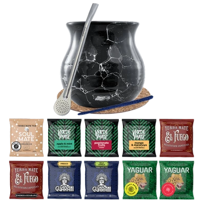 Yerba Mate Set 10x50g Calabash Marmol Bombilla
