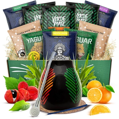 Yerba Mate Starter Set Calabash + Bombilla 10x50g
