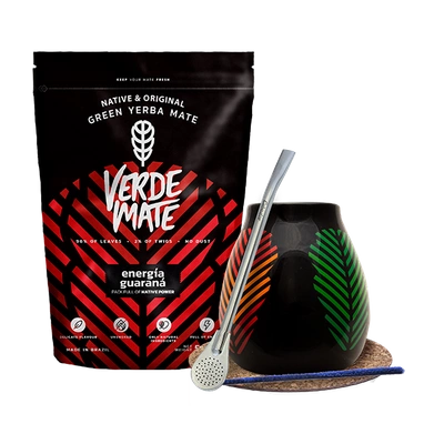 Yerba Mate Set: Verde Mate Energía Guaraná 500g + Calabash + Bombilla