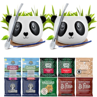 Yerba Mate Set for Two: samples 10x50g 2x Calabash + 2x Bombilla