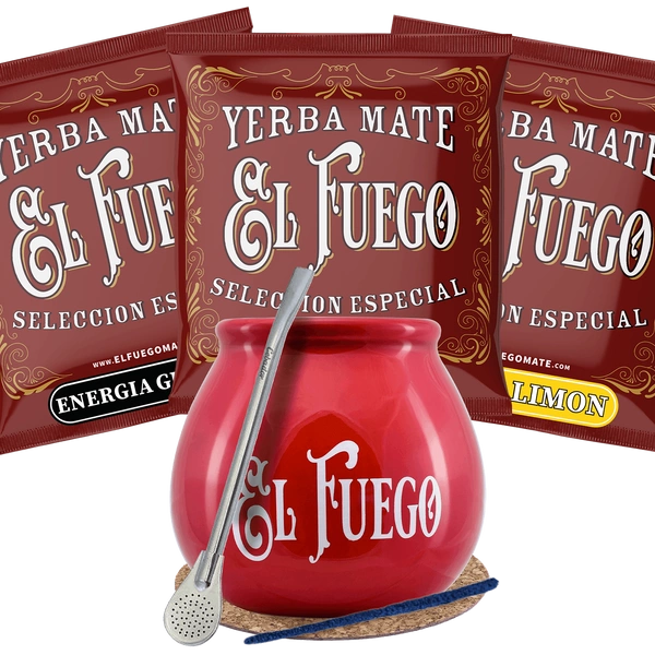 Yerba Mate El Fuego Calabash Bombilla Starter Set