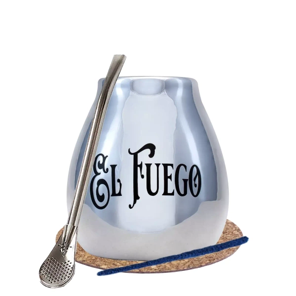 Yerba Mate BIG calabash silver bombilla El Fuego