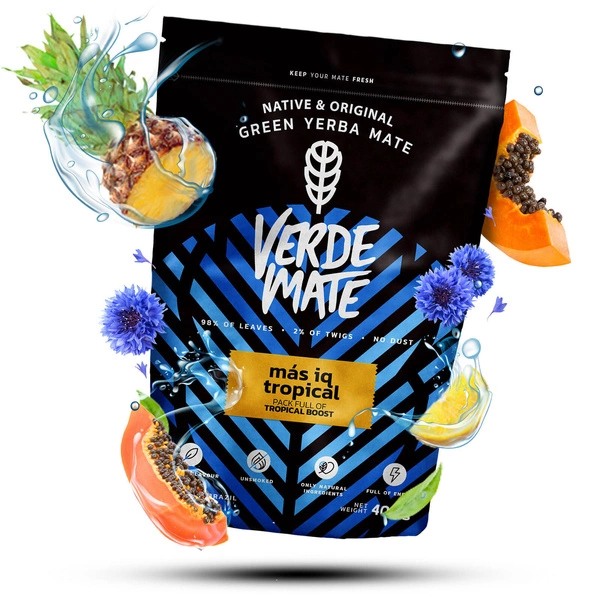 - Verde Mate Green Más IQ Tropical is a sweeter and more aromatic version of the popular Verde Mate Green Más IQ blend. A double dose of pineapple, the addition of sweet papaya and refreshing lemon peel bring to mind the warmth of the tropics.