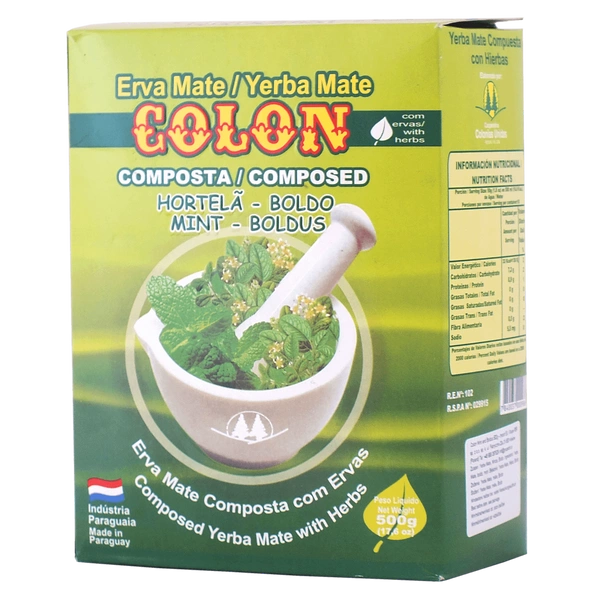 - Colon Compuesta Menta Boldo 500 g 0.5 kg is an ethereal composition of Paraguayan yerba mate and herbs: mint and boldo. The infusion is great for stimulating and refreshing. Recommended cold and warm.