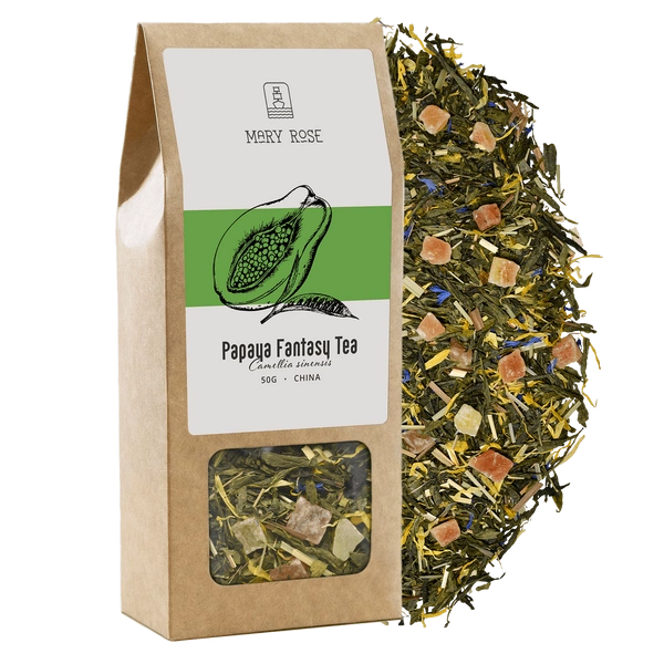 - Mary Rose Papaya Fantasy is a blend based on sencha green tea and perfectly selected herbs and fruit additives. The candied papaya stands out here in particular, as it introduces an aromatic note of sweetness to the composition.
