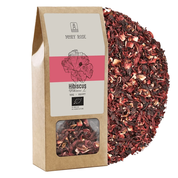 Hibiscus, also known as mallow, is an exotic plant native to Africa and Asia. Thanks to its sour taste, the dried plant is used in mixtures with teas and herbs. This hibiscus we offer comes from an organic plantation and has organic certification. The highest quality guaranteed!